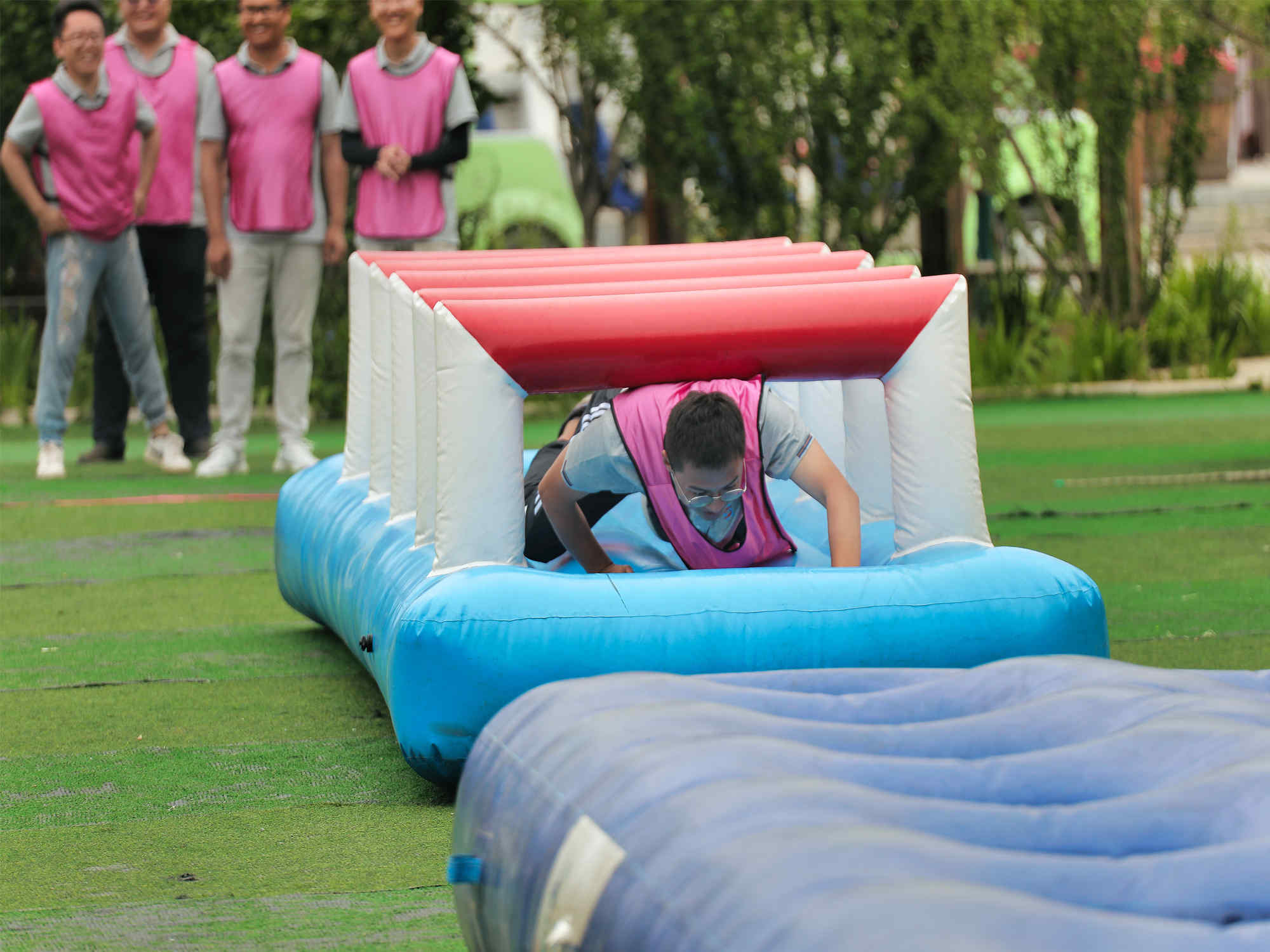 ? 各個隊伍在教練的引導(dǎo)下,高質(zhì)量的完成了“鼓舞人心”、“盲人方陣”、“重走長征路”、“妙筆生花”等多個拓展任務(wù)。過程中,各隊成員精神飽滿、態(tài)度積極,在每項挑戰(zhàn)與合作中都展現(xiàn)了自己的熱情、活力和對隊友的寬容與鼓勵,比賽項目充滿趣味性、娛樂性、競爭性、協(xié)作性。