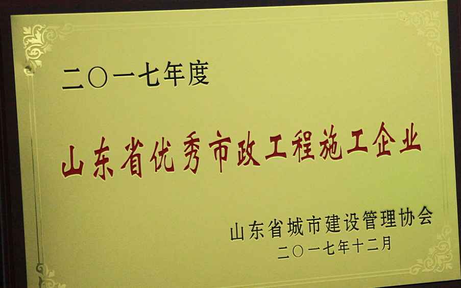 2017年度山東省優(yōu)秀市政工程