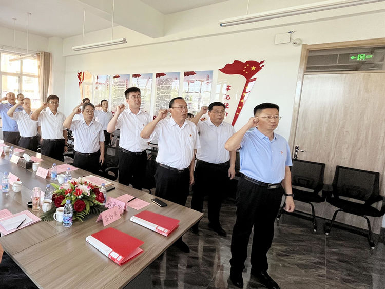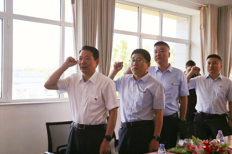 ????活動中,王國軍介紹了集團公司的有關(guān)情況,然后代表集團公司與繡惠街道黨工委副書記王傳峰簽訂黨建共建協(xié)議。隨后,全體黨員面對黨旗,莊嚴舉起右手,一起重溫入黨誓詞。