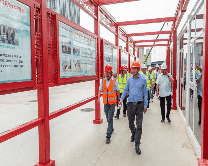 ? ? ? ? 第三分公司軌道交通9號線項目作為主辦單位,首先對現(xiàn)場標準化管理和安全體驗館、積分超市、健康驛站等安全文明亮點,進行了現(xiàn)場講解。然后從工程概況、施工重難點、內(nèi)業(yè)資料等方面入手,就項目部整體管理情況進行了詳細講解、匯報。