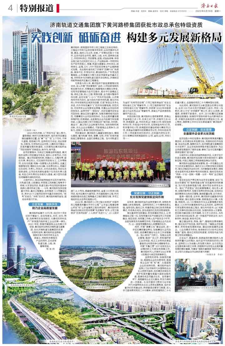 在歷經(jīng)數(shù)十年的發(fā)展中,黃河路橋聚焦高質(zhì)量發(fā)展目標(biāo),系統(tǒng)謀劃未來(lái)發(fā)展方向,憑借良好的市場(chǎng)信譽(yù)、突出的業(yè)績(jī)、雄厚的實(shí)力,在濟(jì)南軌道交通集團(tuán)的大力支持下,各業(yè)務(wù)板塊保持穩(wěn)步高位推進(jìn)中,為企業(yè)快速發(fā)展提供了強(qiáng)勁支撐,奏響了全方位高質(zhì)量可持續(xù)發(fā)展的“進(jìn)行曲”。