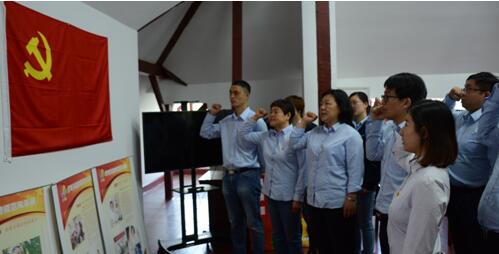 在整個(gè)參觀過(guò)程中,黨員們看得很認(rèn)真,聽得很仔細(xì)。最后我們來(lái)到紀(jì)念館三樓黨員宣誓處,面對(duì)鮮紅的黨旗,全體黨員莊嚴(yán)地舉起右手,莊嚴(yán)宣誓:“我志愿加入中國(guó)共產(chǎn)黨,擁護(hù)黨的綱領(lǐng),遵守黨的章程,履行黨員義務(wù),執(zhí)行黨的決定,嚴(yán)守黨的紀(jì)律,保守黨的秘密,對(duì)黨忠誠(chéng),積極工作,為共產(chǎn)主義奮斗終身,隨時(shí)準(zhǔn)備為黨和人民犧牲一切,永不叛黨?!辩H鏘的語(yǔ)調(diào),響亮的聲音,久久回蕩。