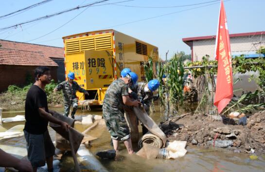 因水中有雜物及排水區(qū)域不集中,隊員們在散發(fā)著惡臭的污水中,不斷變換排水管位置。為爭分奪秒早日打贏這場搶險攻堅戰(zhàn),黃河路橋搶險隊分成三個小組,4小時一班輪流值守,連續(xù)奮戰(zhàn),堅守搶險一線。經(jīng)過一天一夜強排水,西神壇村水澇解除。