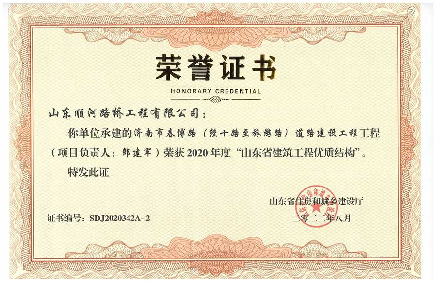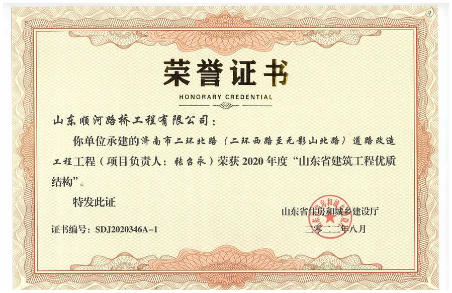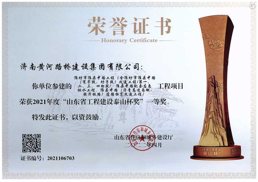 濰坊市濰縣中路工程榮獲2021