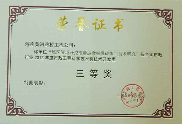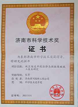 濟(jì)南市科學(xué)技術(shù)獎(jiǎng)(城區(qū)隧道開挖