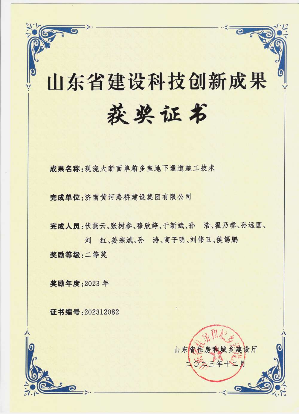 現(xiàn)澆大斷面單箱多室地下通道施工技術(shù)的研究與應(yīng)用 | 國內(nèi)領(lǐng)先 |